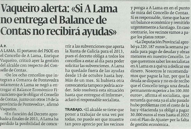 Por lo tanto, A Lama lleva más de un mes sin poder acceder a las subvenciones de cualquier órgano de la Xunta de Galicia.